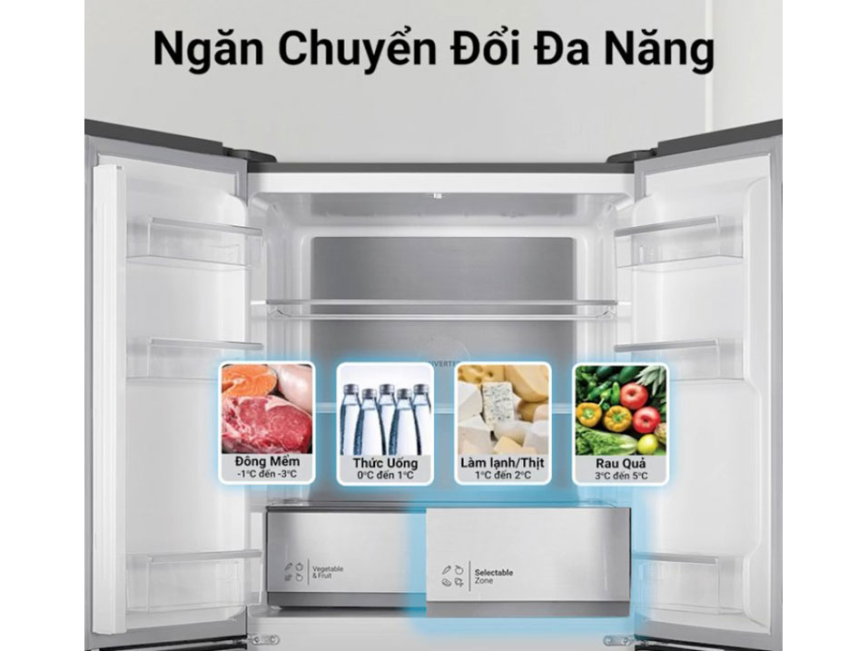 Ngăn chuyển đổi đa năng Selectable Zone có 4 chế độ chuyển đổi nhiệt độ linh hoạt giúp dễ dàng điều chỉnh tùy theo nhu cầu sử dụng, tối ưu không gian lưu trữ trong từng thời điểm