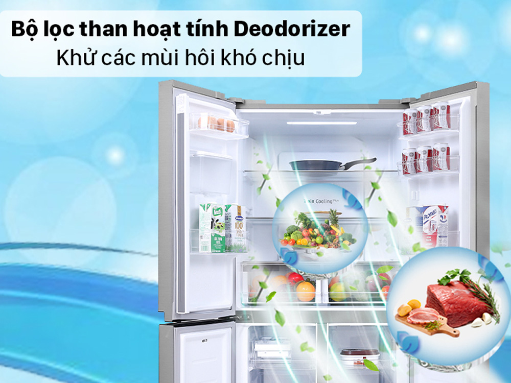 Không chỉ sở hữu công nghệ làm lạnh hiện đại, tủ lạnh Samsung RF48A4010M9 SV còn được tích hợp bộ lọc than hoạt tính Deodorizer. Bộ lọc này có khả năng kháng khuẩn, loại bỏ mùi hôi, mùi tanh khó chịu, mang lại bầu không khí bên trong tủ luôn sạch sẽ. Nhờ đó, thực phẩm sẽ giữ được sự tươi mới không bị ám mùi hôi, không bị lẫn mùi, biến vị.