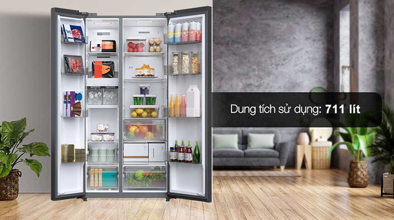 Với dung tích tổng 670 lít, tủ lạnh này có khả năng lưu trữ khối lượng lớn thực phẩm, đáp ứng nhu cầu của gia đình từ 5–7 thành viên. Ngăn mát và ngăn đông được bố trí khoa học, giúp tối ưu không gian và dễ dàng phân loại thực phẩm.