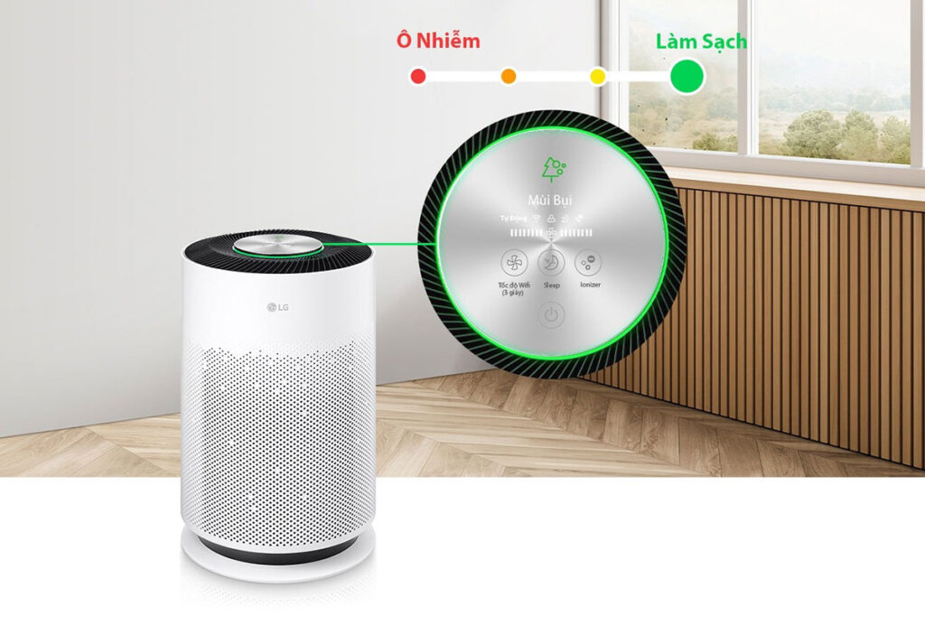 Một trong những tiện ích cực kỳ thông minh mà người dùng đánh giá cao ở chiếc máy lọc không khí giá rẻ LG AS60GHCG0 này là đèn hiển thị chất lượng không khí theo màu sắc. Ngay cả khi bạn không kiểm tra ứng dụng hay chạm vào bảng điều khiển, bạn vẫn dễ dàng biết được không khí trong nhà đang ở mức nào: